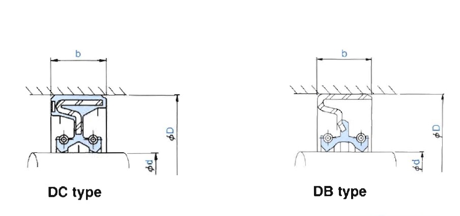 DC和DB型骨架油封由兩個相反方向的密封唇對置組合形成的油封,主要用于兩種油的密封,可節(jié)省空間。