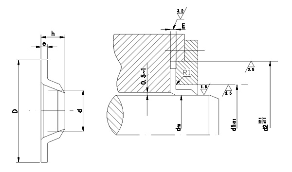 J型防塵圈具有結(jié)構(gòu)簡單、截面小、安裝方便、成本低等特點(diǎn),廣泛用于油缸和氣缸中,防止外界污染物混入液壓系統(tǒng)和密封系統(tǒng),有時(shí)亦用于直接密封。主要材料有丁晴橡膠NBR和氟膠FKM,設(shè)計(jì)選用時(shí)可參照HG4-332-66標(biāo)準(zhǔn)。