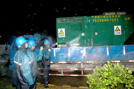 8月7日晚上,浙能天然氣運(yùn)行公司一線抗臺(tái)人員檢查柴油發(fā)電機(jī)情況。 毛中文攝 攝