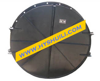 節(jié)能型側(cè)翻式拍門(mén)運(yùn)行中的兩大關(guān)鍵點(diǎn)是:止水密封功能和啟閉靈活度。拍門(mén)的止水裝置為結(jié)構(gòu)型門(mén)葉,密封裝置為橡膠;門(mén)葉必須具有均勻的受力設(shè)計(jì)(如:弧度、扇形加強(qiáng)筋),而密封橡膠中以丁晴橡膠最為理想,具有耐沖擊、抗老化和耐腐蝕的功能。