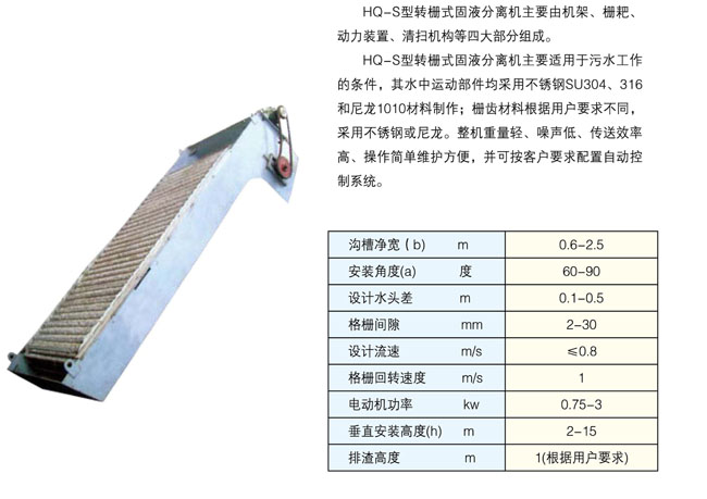 HQ-S型轉(zhuǎn)柵式固液分離機